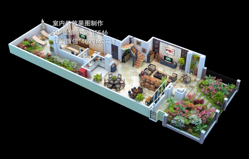 长沙三维户型鸟瞰效果图制作,也叫做立体户型图,机房动环,UPS配电室,多媒体教室,或是3D室内户型图等。这种一般常用在地产策划的户型单页上,或是印刷,或是打印,或是用在客户端做成动态全景图,环视动画等。这种图其实搭配平面图,算是一种很好的营销方式。